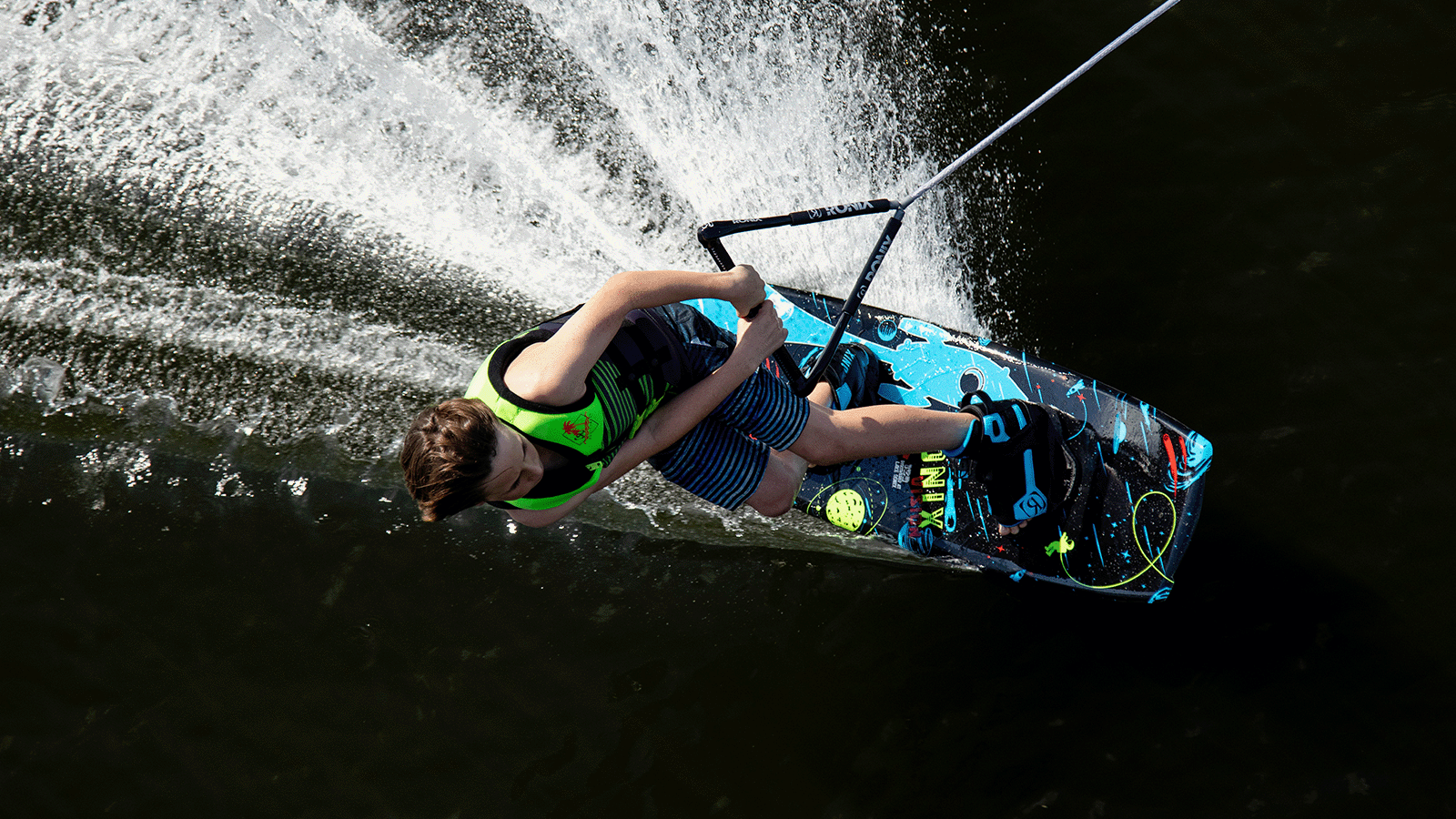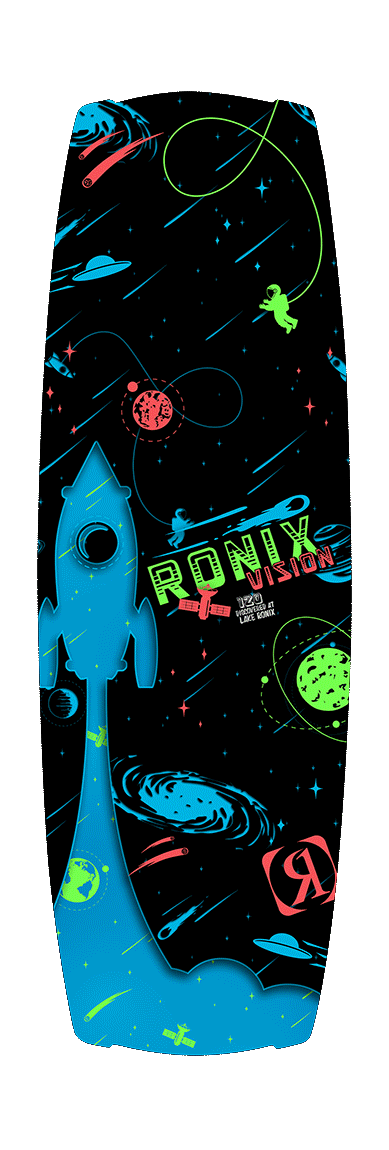 Designed and created by the boy’s modern prospect, recognizing that wakeboarding is the only board sport where your hips and shoulders aren’t parallel. A symmetrical shape with asymmetric features designed solely for the needs of the next generation of rippers. Our Grom Glass offers a lighter layup for more feel with the water, and less swing weight in the air. A rockerline designed to assist a rider in a relaxed neutrally balanced position. Flip the lights off check out the glow in the dark images of the Vision.