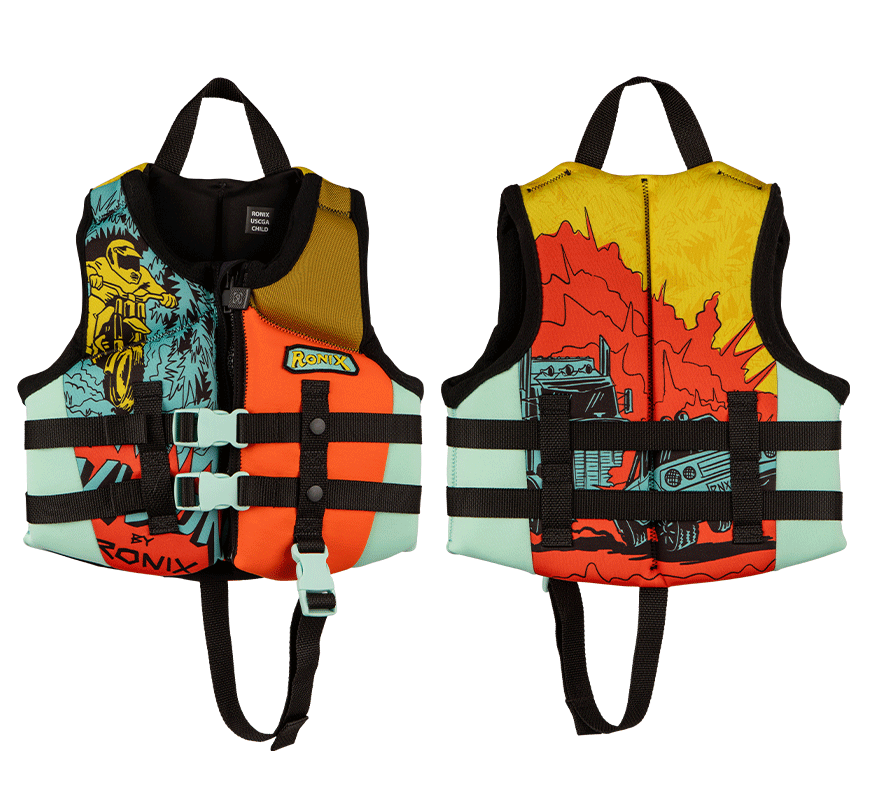 Their feet are wider, their boards surface easier, and their jackets have some extra soft materials. Everything about this series is for the up and coming water grommets ready to take over the lakes. Oh yeah and the board has some cool glow in the dark imagery to it.