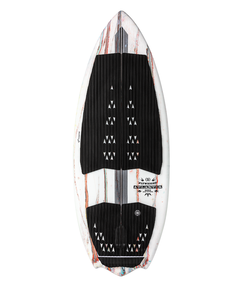 A fast, responsive style of board where the rider’s position is centered with a more balanced body. These sharp rail, thin profiled boards react quicker for people that don’t have a lot of time to waste. Preferred by surfers that like to have more feel with their board itself – and not just on fins. They can break free easier for 360’s on the water or shuvits off it. A more forgiving style of board when riding behind a steep wake because you typically ride this style of board at a shorter length (making it less likely to dunk the nose). Because of how speedy these models are – you can get away with a shorter, lightweight length.