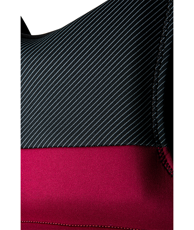 The foam starts in the chest at 2” thick, then fades to 1” thick around your waist. Buoyancy where you need it, and mobility where you want it.