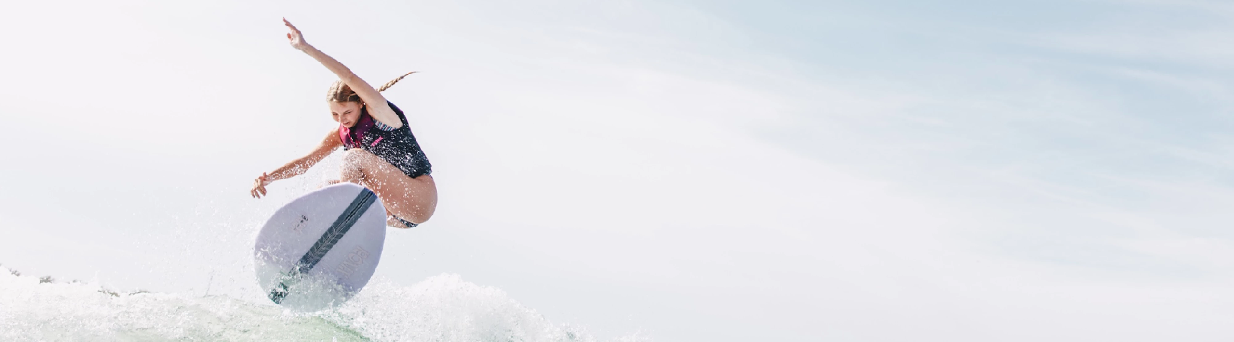 All our boards are built with the first in class materials that won’t break down over time. But three series put even more emphasis on the ooops factor. Tuff Tech. - A durable lightweight and more affordable option with a protective laminate that breaks up the water for less resistance. Packed down to a grom series - with an even lighter version - Sonic Core.