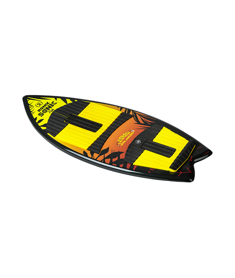 A thin profiled, 3’9 length, all-around fun board. A deep swallow tail that can easily break free on the top of the lip yet has the bottom turn drive to get you there quickly. A versatile shape that withstands time in the progression of surfer designs and constructions. A clean bottom, fast rockerline, and smooth rails combined with the swallowtail Fish profile allows it to ride loose, breaking free on the top of the lip, yet still responsive for a bottom turn drive that will get you there on time. You’ll get recreational level ease and stability from this smooth ride – a perfect board for us inlanders looking for wake slashing adaptability. A ride for all styles and abilities. With 3 fins this board will track harder and feel more secure in the water. Also comes with a performance award sticker pack with the various tricks that should be on any grom’s to do list. But most importantly it has a little extra assistance by our propelled turbo 3000 fin.