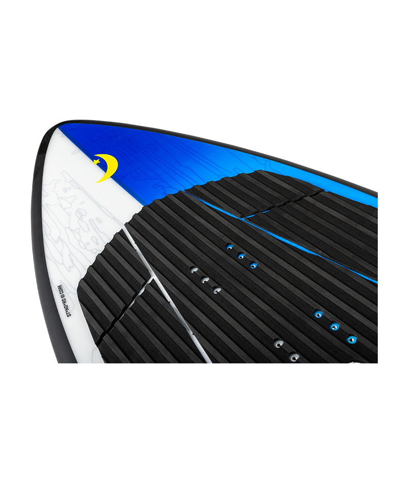 A fast, responsive style of board where the rider’s position is centered with a more balanced body. These sharp rail, thin profiled boards react quicker for people that don’t have a lot of time to waste. Preferred by surfers that like to have more feel with their board itself – and not just on fins. They can break free easier for 360’s on the water or shuvits off it. A more forgiving style of board when riding behind a steep wake because you typically ride this style of board at a shorter length (making it less likely to dunk the nose). Because of how speedy these models are – you can get away with a shorter, lightweight length.
