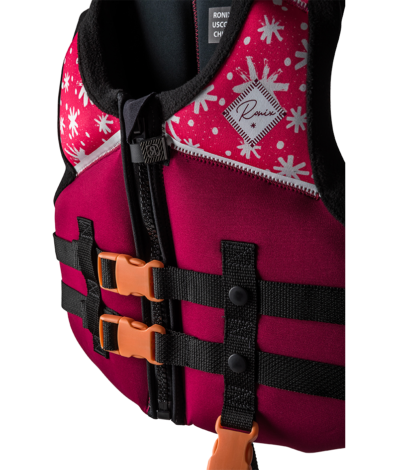 All of our Laguna vests are softer, extra comfortable, and most importantly, they float. This series has every premium innovation we could come up with. These jackets are made from a plush inner and outer neoprene material, have added fleece to further that lavish feeling, and also forgiving neoprene covered webbing straps. Everything about this series of kid’s CGA jackets is designed for added coziness and durability, to allow for more time in the water or on the boat. Our most comfortable materials in a high-end girl's vest ranging from 33 - 55 lbs.