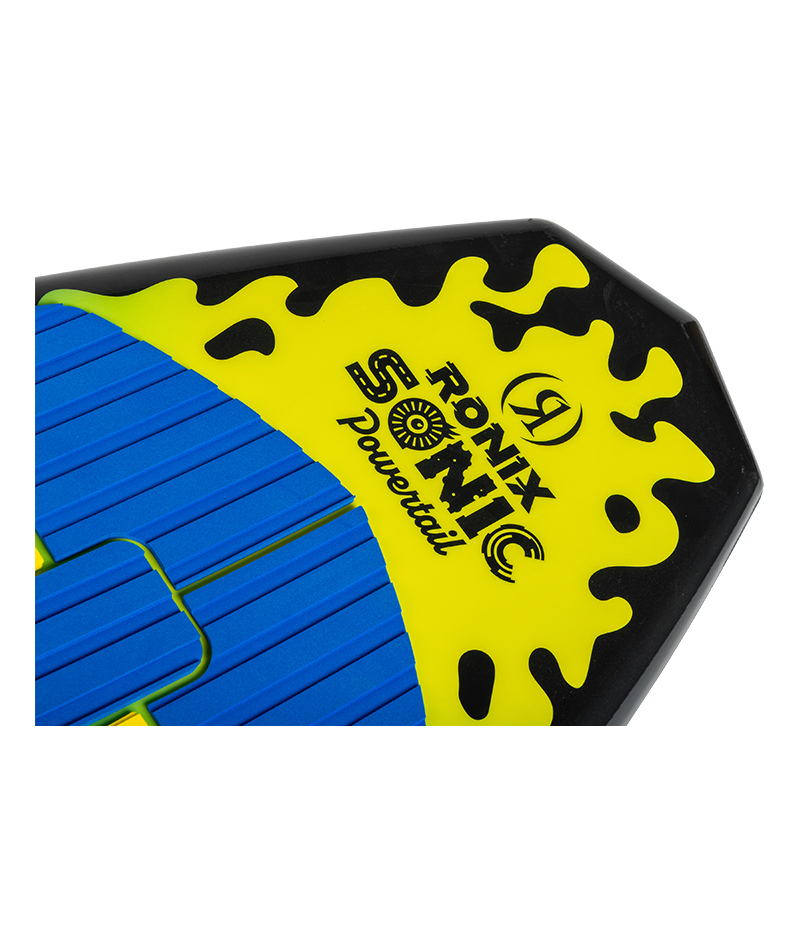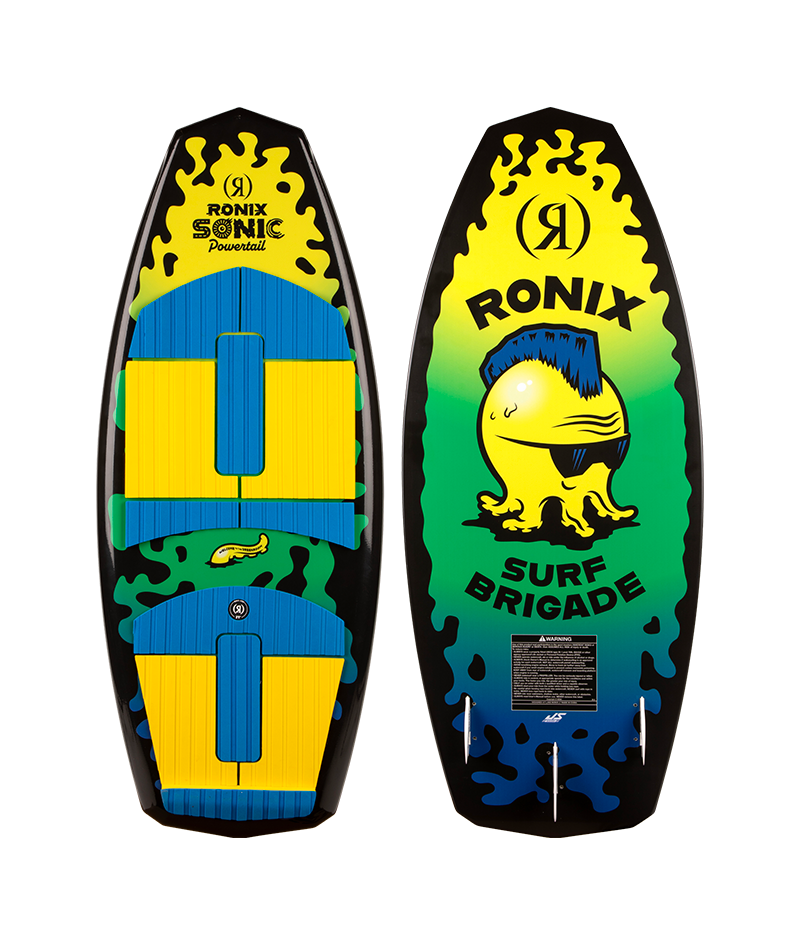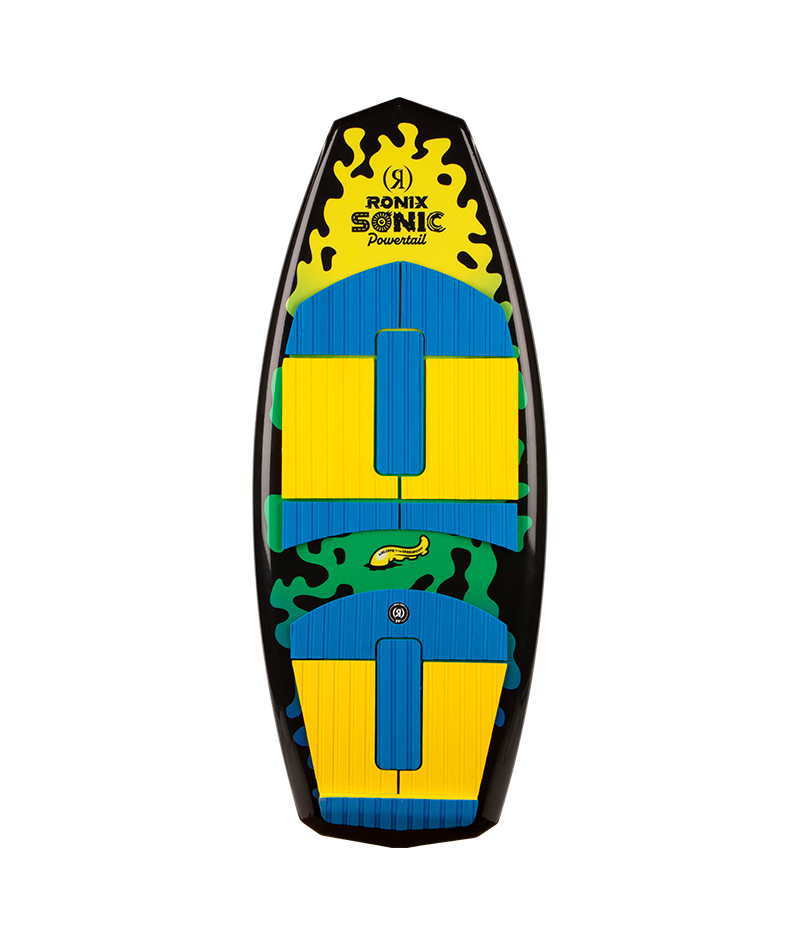 The most drive/push in a kid’s surfer. Designed for kids that don’t know how to pump yet or are riding behind small size waves. Small wake? No problem with the added drive of a Powertail. The surfer combines the stable aspects of a Longboard, the bottom turn drive of a Thruster, and the ability to air out like no other kid’s board out there. There has never been a board with this much surface area in the tail for bigger airs off the top deck, that can also easily be ridden behind smaller size boat wakes. With 3 fins this board will track harder and feel more secure in the water. Also comes with a performance award sticker pack with the various tricks that should be on any grom’s to do list. But most importantly it has a little extra assistance by our propelled turbo 3000 fin. A stable, high speed grom ride.