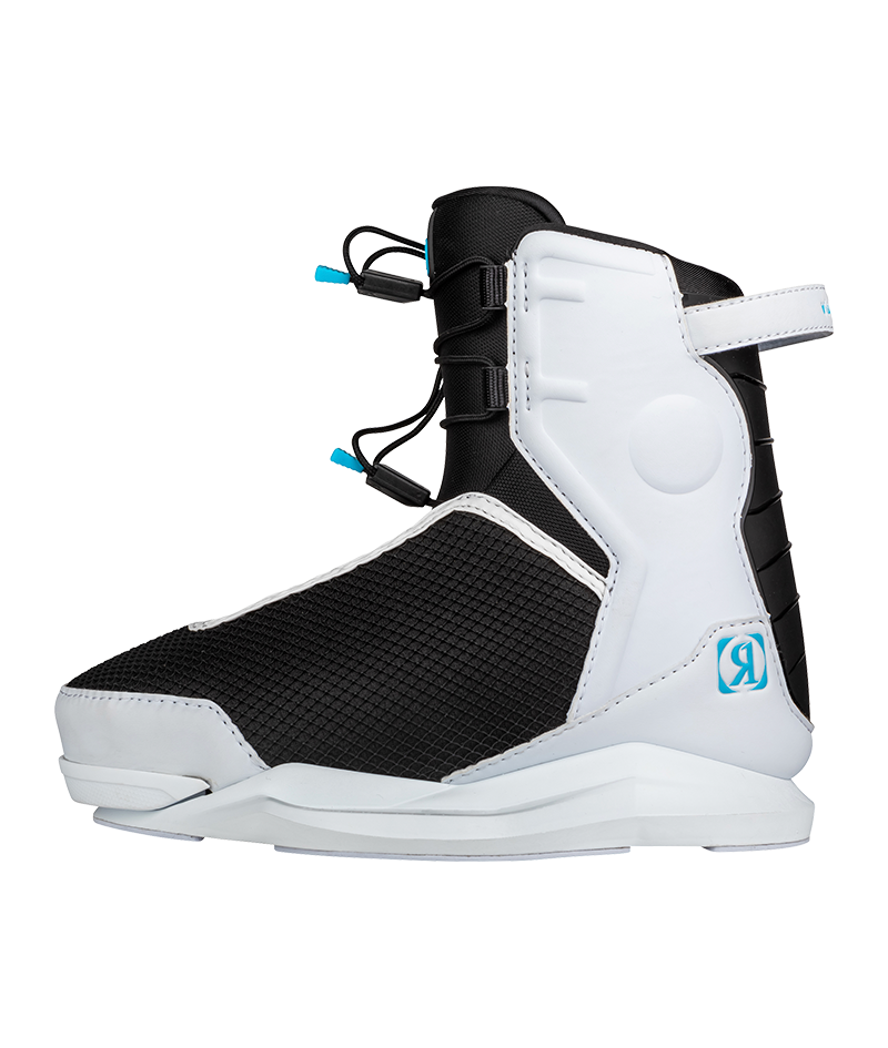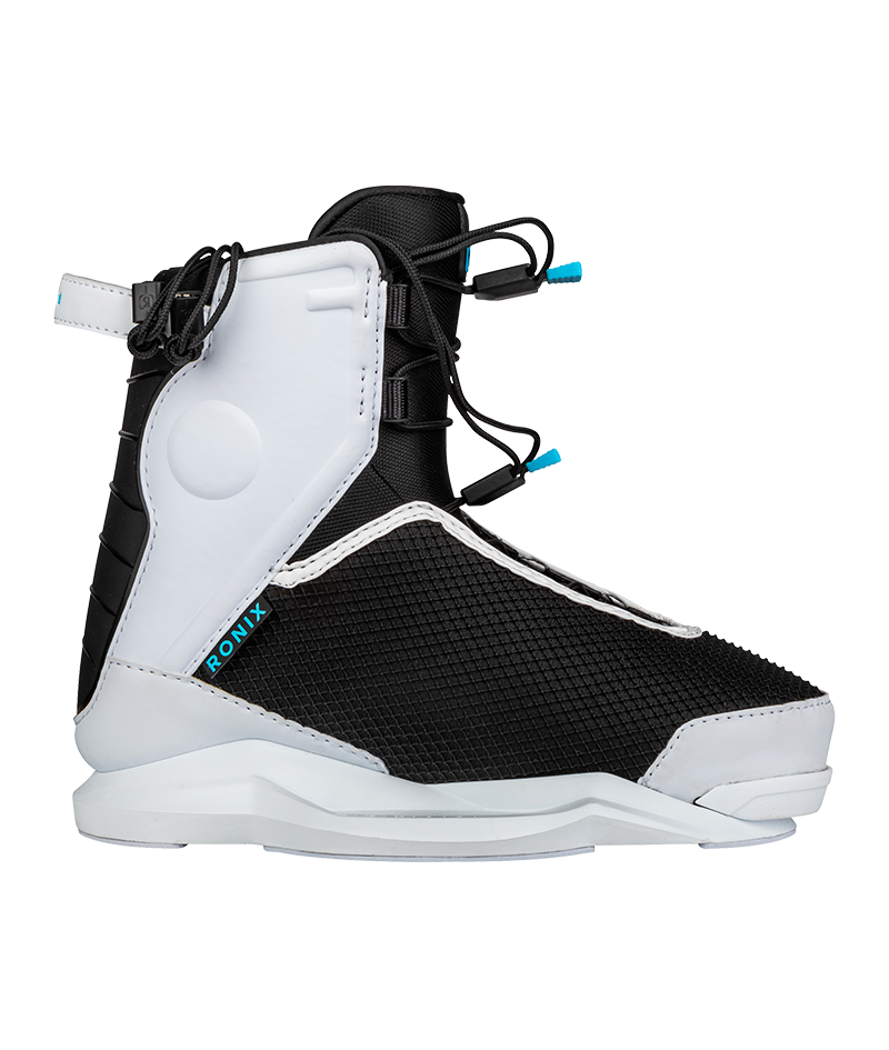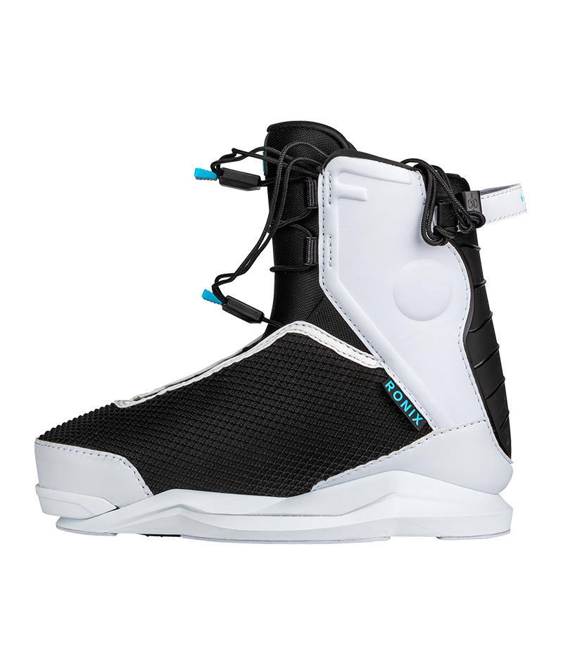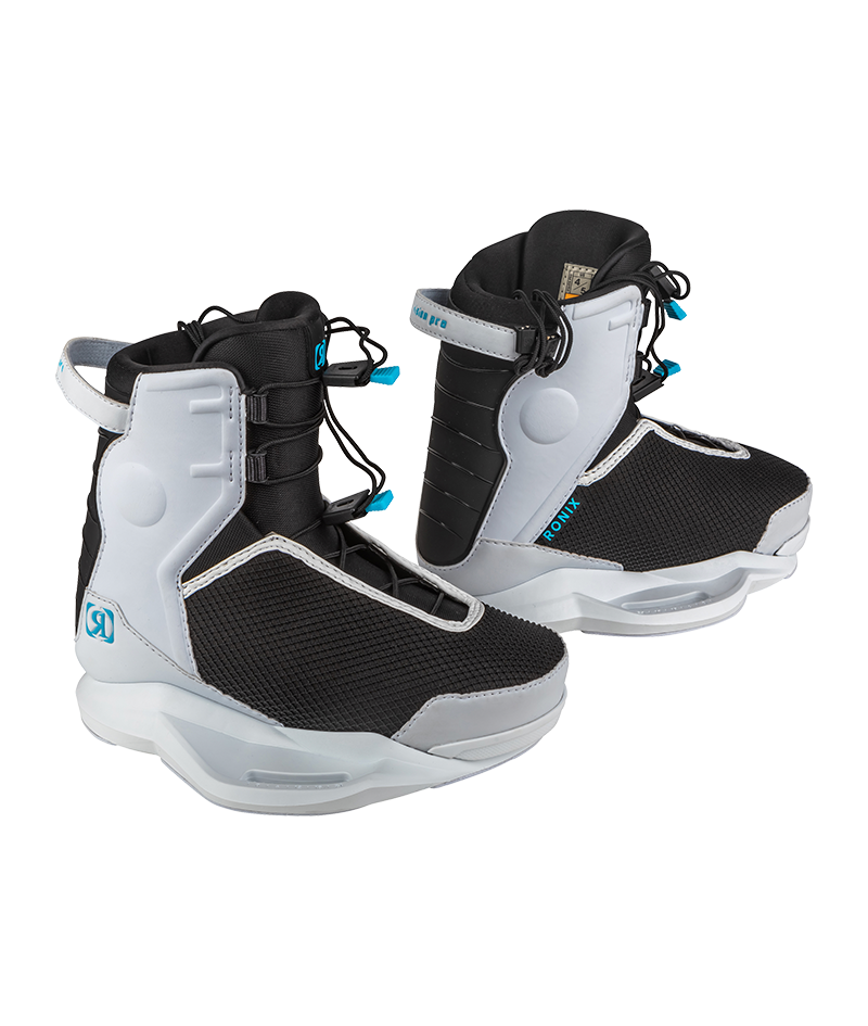 Before we tell you some of our unique design specifics on our kid’s boots let’s talk about what is available on every Ronix boot – adaptability. For years footwear was based on having a stiff plate and a stiff sidewall. Drawback to that is 2 things. Nobody wants the side of their foot to be up against something rigid, and there is a loss of adaptability when that sidewall won’t alter around the top of your foot. So, we changed that developing and patenting the first 2-piece mainframe system. Now you can complement that same rigid base plate optimizing heel/toe reaction time with the softest, plush, flexible skeleton that wraps around the rider’s foot. As a rider cinches their Autolock lace, or dials in their BOA® the chassis now softly conforms over the top. Everybody wins. Back to kids. When we started Ronix and we started looking at kids feet we were blown away by the scaling proportions – as kid’s feet are obviously shorter – they are nowhere near as narrow as you would think they would be. We did some research and discovered something that makes a lot of sense but was never addressed in wakeboarding. Kids have flexible bones, plumper fat pads that make a rounded broader shape – this combination contributes to a wider less angular foot structure. We accounted for that by providing more support around the foot with our adaptive chassis – but also made a wider kid’s outline as a percentage of scaling to account for their less angular foot structure. The result is happier feet. Just have them try on any of our kids boots and feel the difference.
