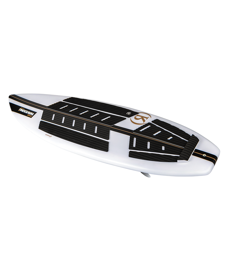 A fast, responsive style of board where the rider’s position is centered with a more balanced body. These sharp rail, thin profiled boards react quicker for people that don’t have a lot of time to waste. Preferred by surfers that like to have more feel with their board itself – and not just on fins. They can break free easier for 360’s on the water or shuvits off it. A more forgiving style of board when riding behind a steep wake because you typically ride this style of board at a shorter length (making it less likely to dunk the nose). Because of how speedy these models are – you can get away with a shorter, lightweight length.
